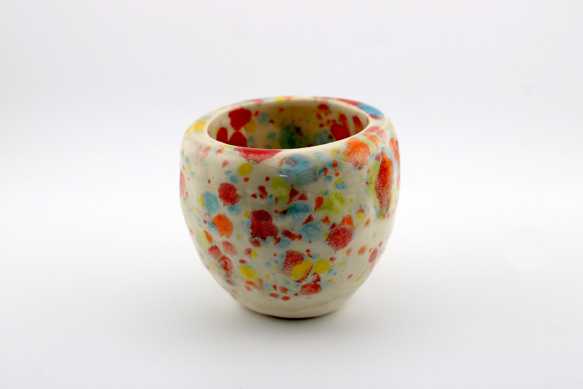 Homemade pottery. Pinch pot white clay with fun speckled glaze. Piece is food safe however NOT microwaveable. Does not hold water but can be used for small air plants with minimal moisture. Hand wash, not dishwasher safe.