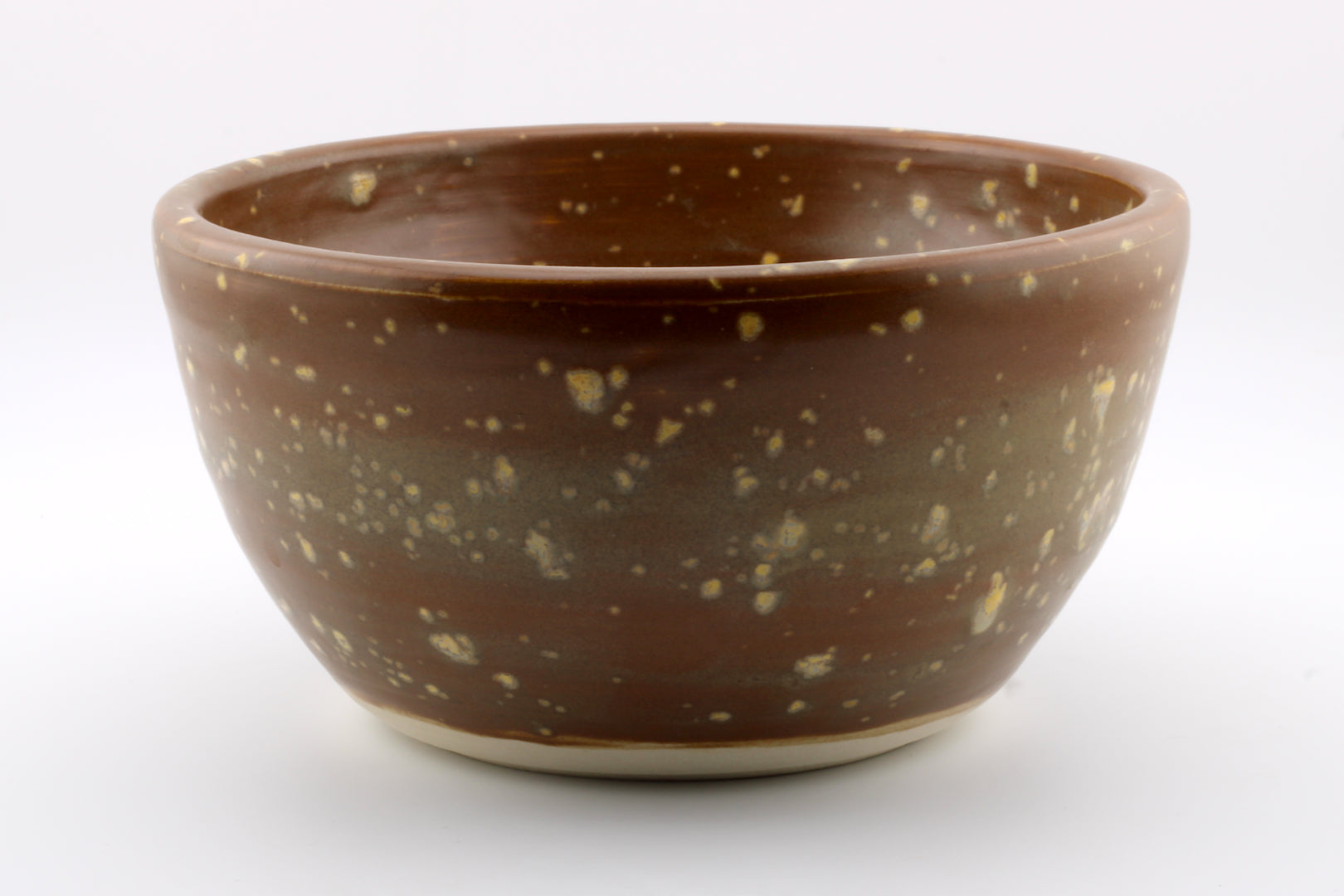 Handmade wheel thrown white clay bowl with brown speckled glaze. Approx. 5.5 in. W x 3.0 in. H. Functional Stoneware. Food safe, handwashing recommended.